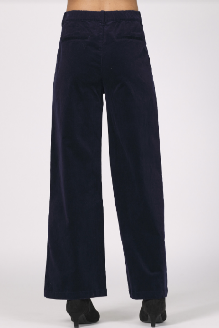Step into style with the Anabel Corduroy Wide Leg Pants. These versatile, wide-leg pants are made from soft navy corduroy, offering a luxurious texture and a comfortable fit. With their stylish patch pockets and high-waisted silhouette, they're the perfect blend of vintage charm and modern design, ready for any occasion.