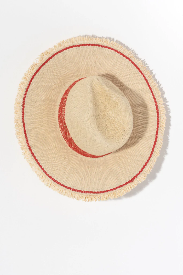 Keep the sunshine out of your eyes this summer with Shiraleah's Ari Hat. Made from natural paper straw with a tufted hem and red stripes, this chic beach hat is the perfect match to any summer outfit. Pair with other items from Shiraleah's American Summer collection to complete your look!