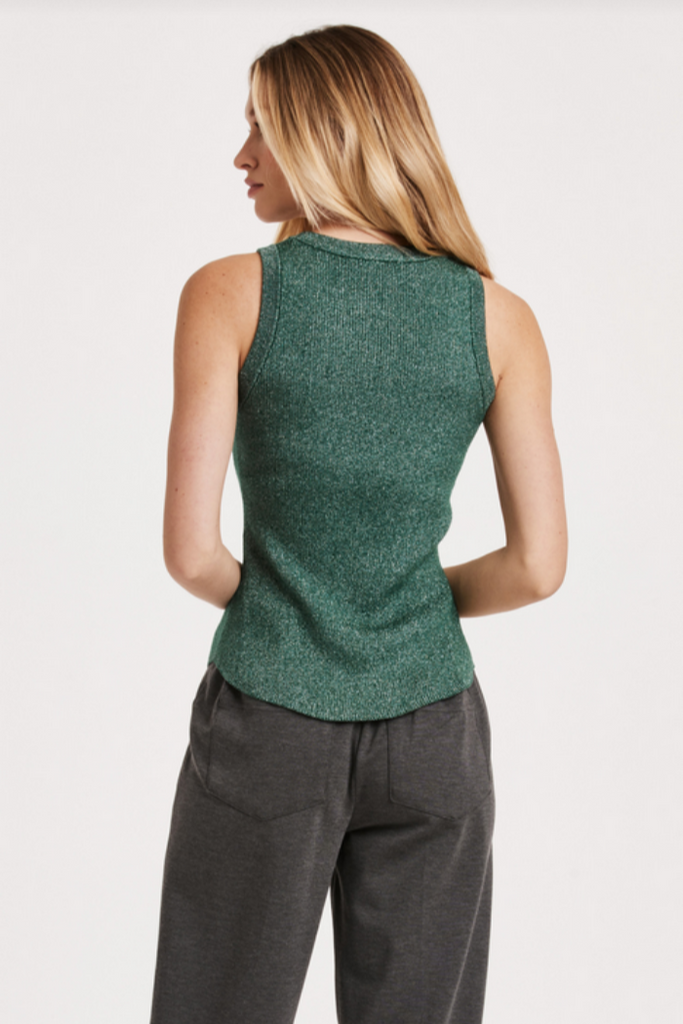This shimmery, soft tank top is the ultimate layering piece. The cropped hem and high neck make it easy to throw on under a button-up or sweater for a cute, colorful pop!