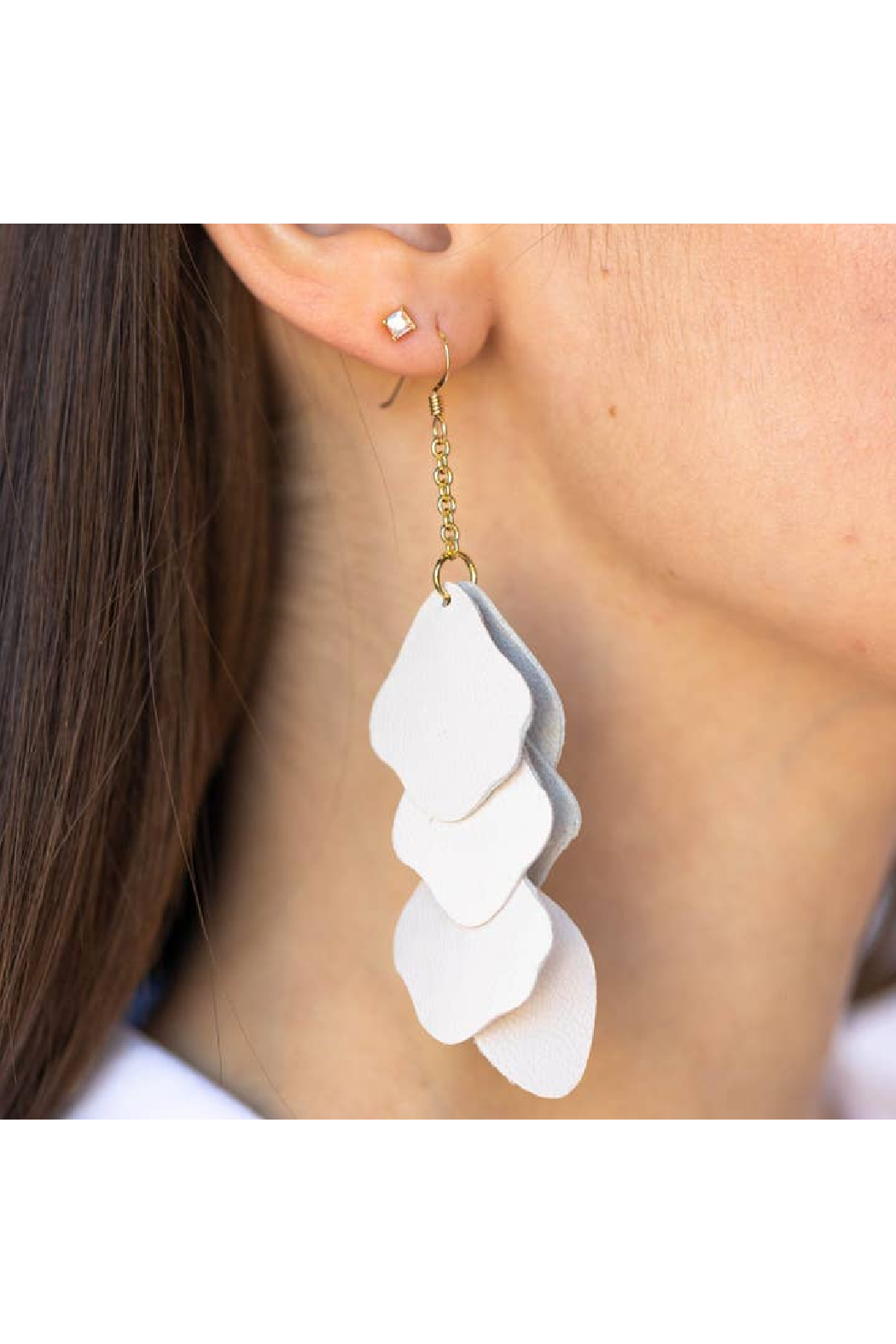 Florence is a statement earring that makes the perfect finishing touch to any ensemble. Crafted with soft Nappa leather attached to gold chains, this versatile piece will go with anything.