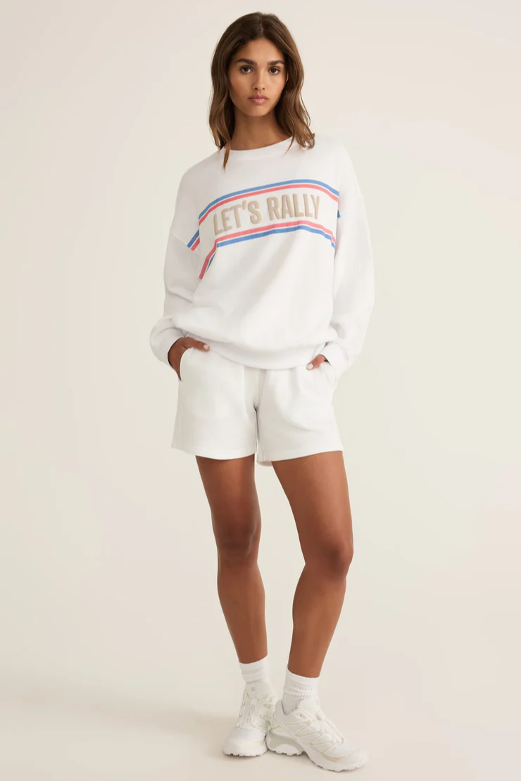 Sporty and effortlessly cool, this oversized sweatshirt is made from 100% cotton for a soft, lived-in feel. Featuring bold “Let’s Rally” graphics in puff ink, it’s the perfect post-workout layer.
