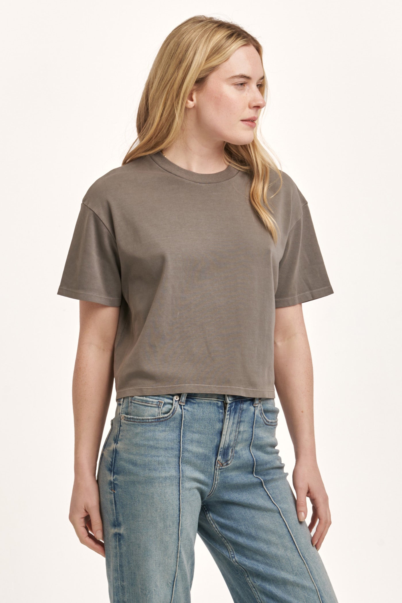 The Maddox Tee is a cropped crew t-shirt with short sleeves and a boxy, relaxed silhouette. It’s cut from a soft, lived-in cotton with a muted washed finish for easy layering. Dear John lends a modern, casual point of view to this versatile everyday tee that pairs effortlessly with denim or high-waisted trousers.
