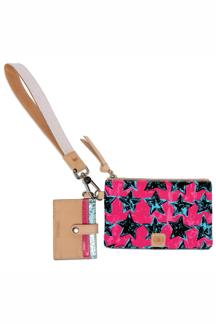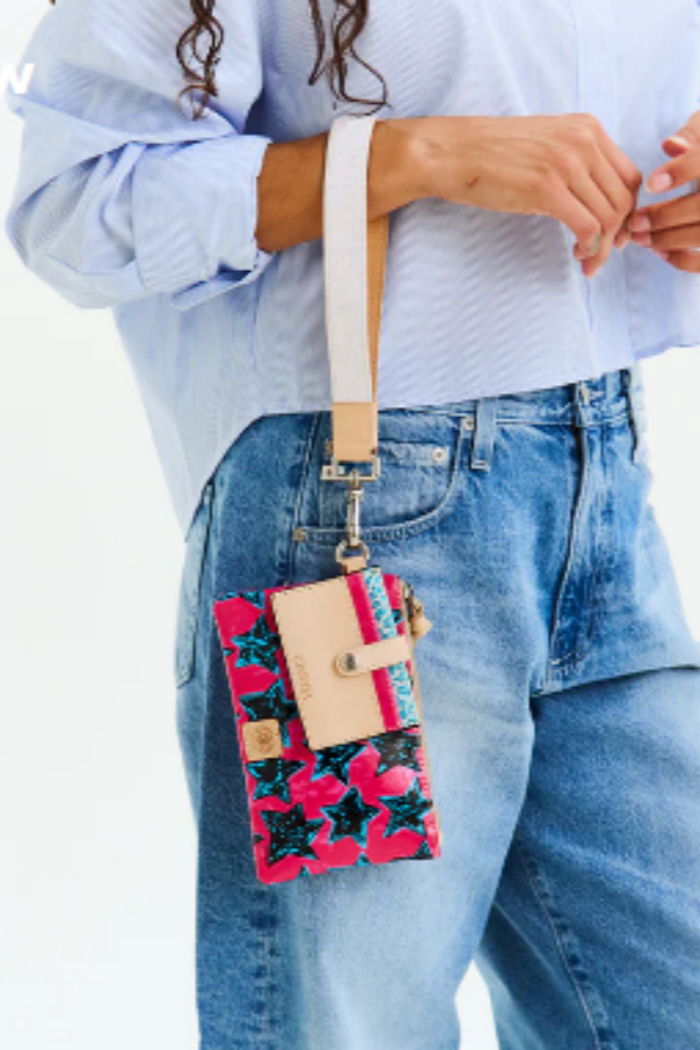 The Combi, a combination of on-the-go accessories, is a new way to carry your keys, cards, and the small stuff together or separately. This colorful wristlet wallet includes a pocket pouch, secure card slot wallet and fits comfortably around your wrist - ready for your next journey.