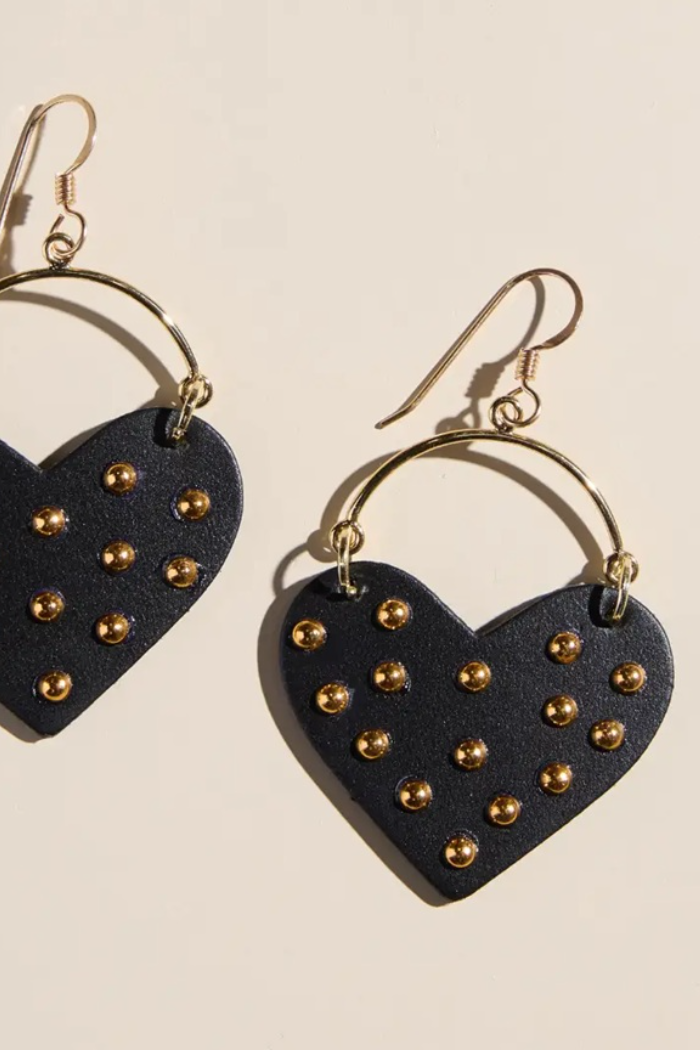 Make a statement with the Studded Harlow earrings. They feature a bold, wide heart shape and are crafted with gold studs applied by hand.