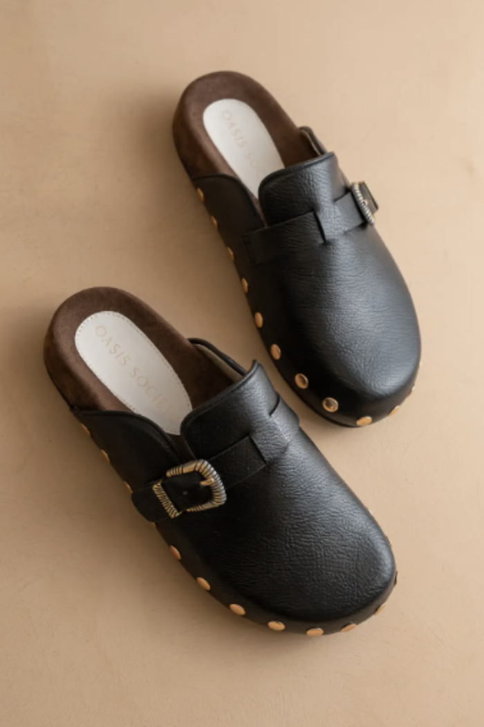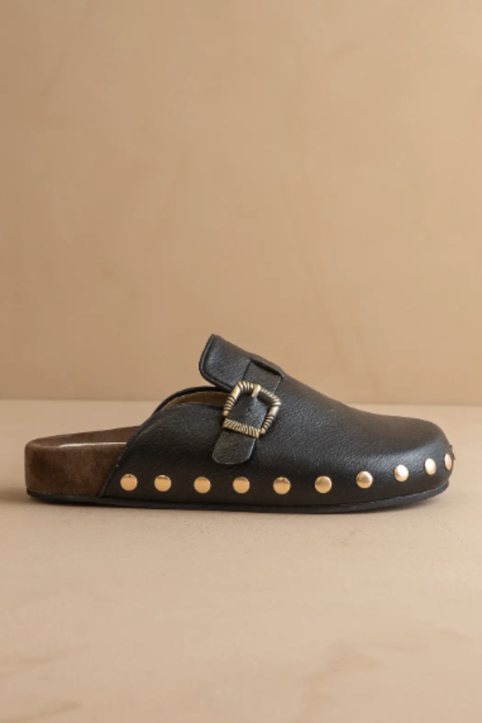 An everyday statement. The TONI updates the classic clog silhouette with gold dome studs, a vintage-inspired buckle, and a molded footbed that feels like a dream. Crafted from atelier-selected materials for that perfect balance of edge and ease.