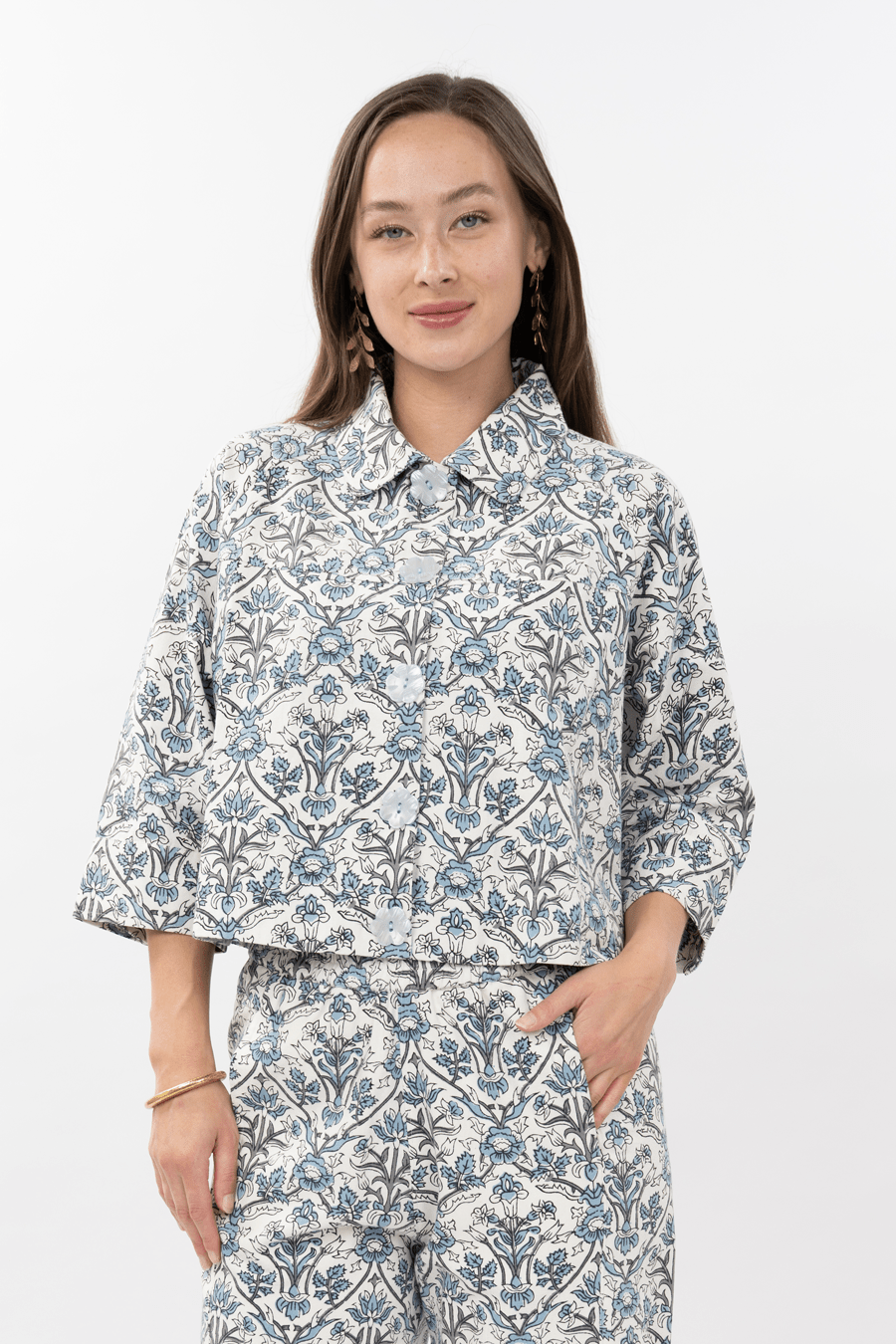 Pop on this fanciful swing jacket as the perfect Spring weather layer. Ivy Jane made this jacket with 100% cotton printed with toile flowers and polished it off with darling floral buttons. Pair it with the Toile Barrel Pant for the cutest matching set!